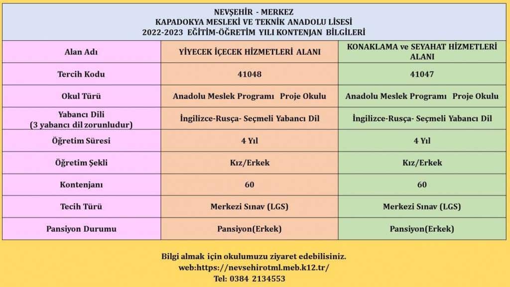 NEVŞEHİR / MERKEZ - Kapadokya Turizm Mesleki ve Teknik Anadolu Lisesi
