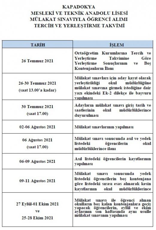 NEVŞEHİR / MERKEZ - Kapadokya Turizm Mesleki ve Teknik Anadolu Lisesi